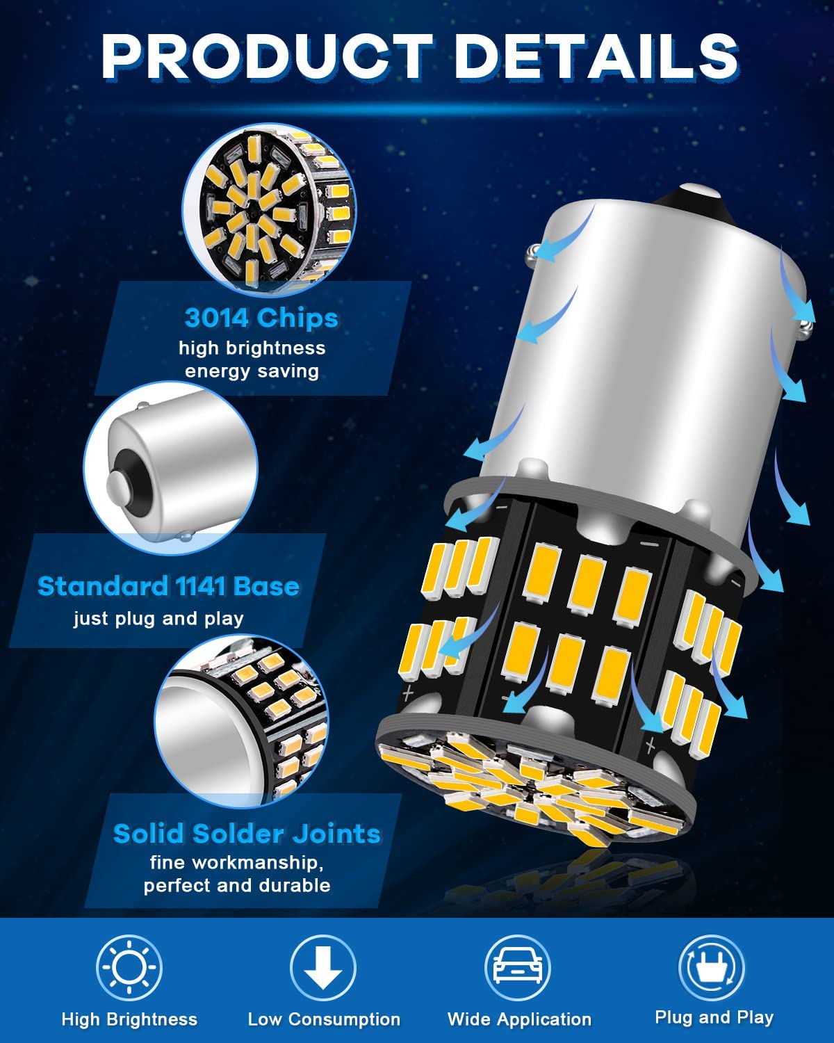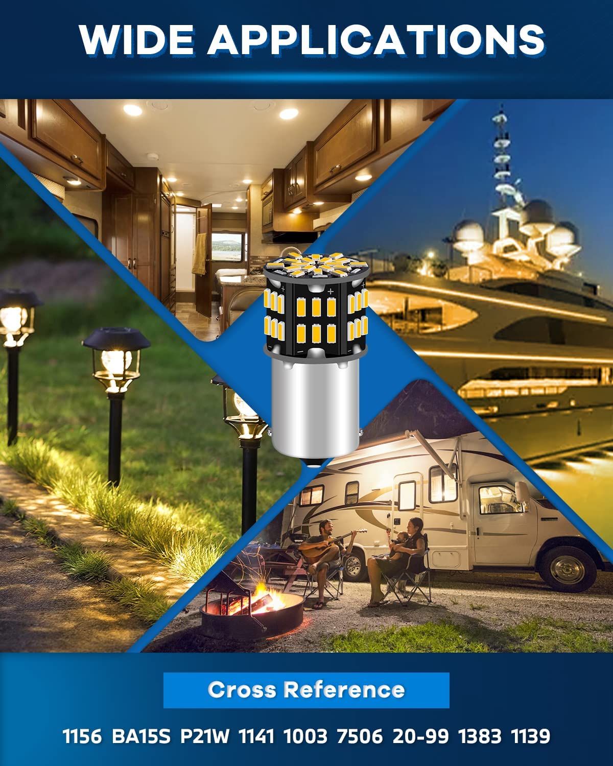 12パック1156BA15S 7506 1141 10031073ソフトウォームホワイト3000kLEDライト12V-DC、3014 54SMD車のインテリアRV照明用交換キャンピングカーターンシグナルライトランプテールバックアップバルブ