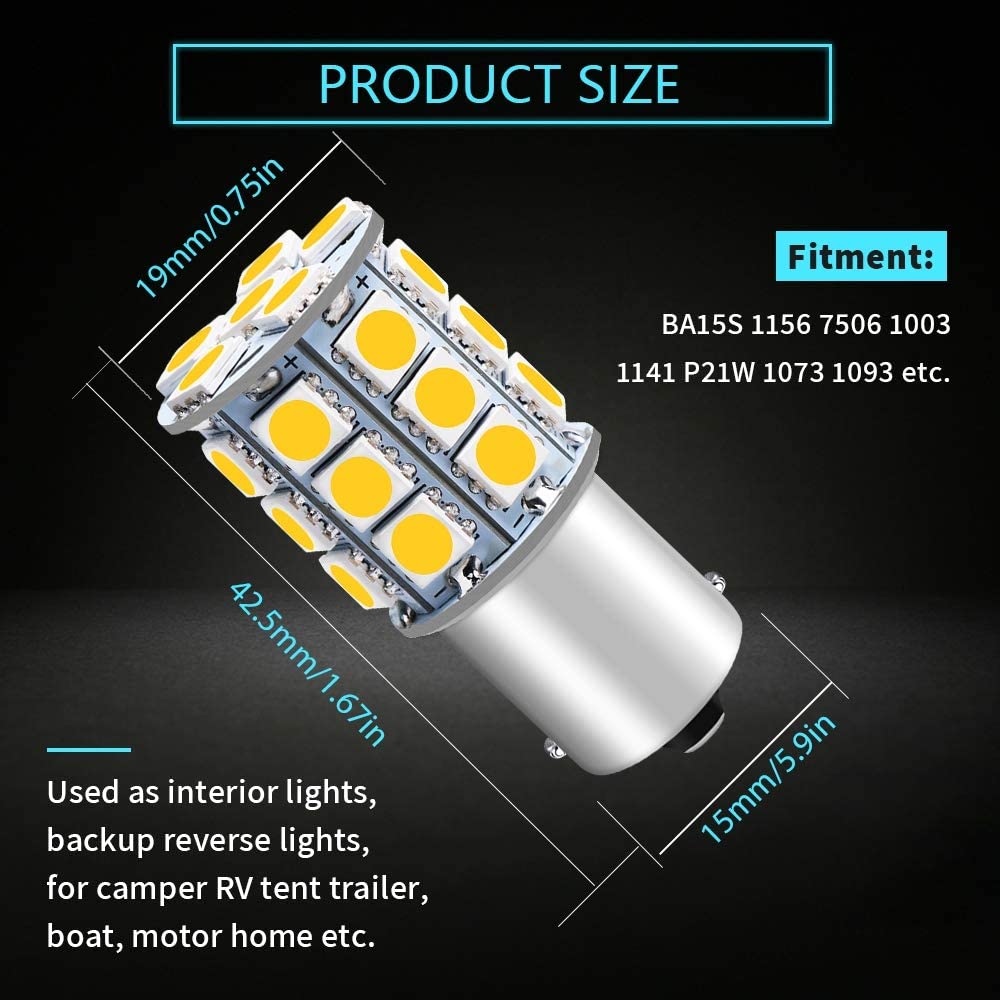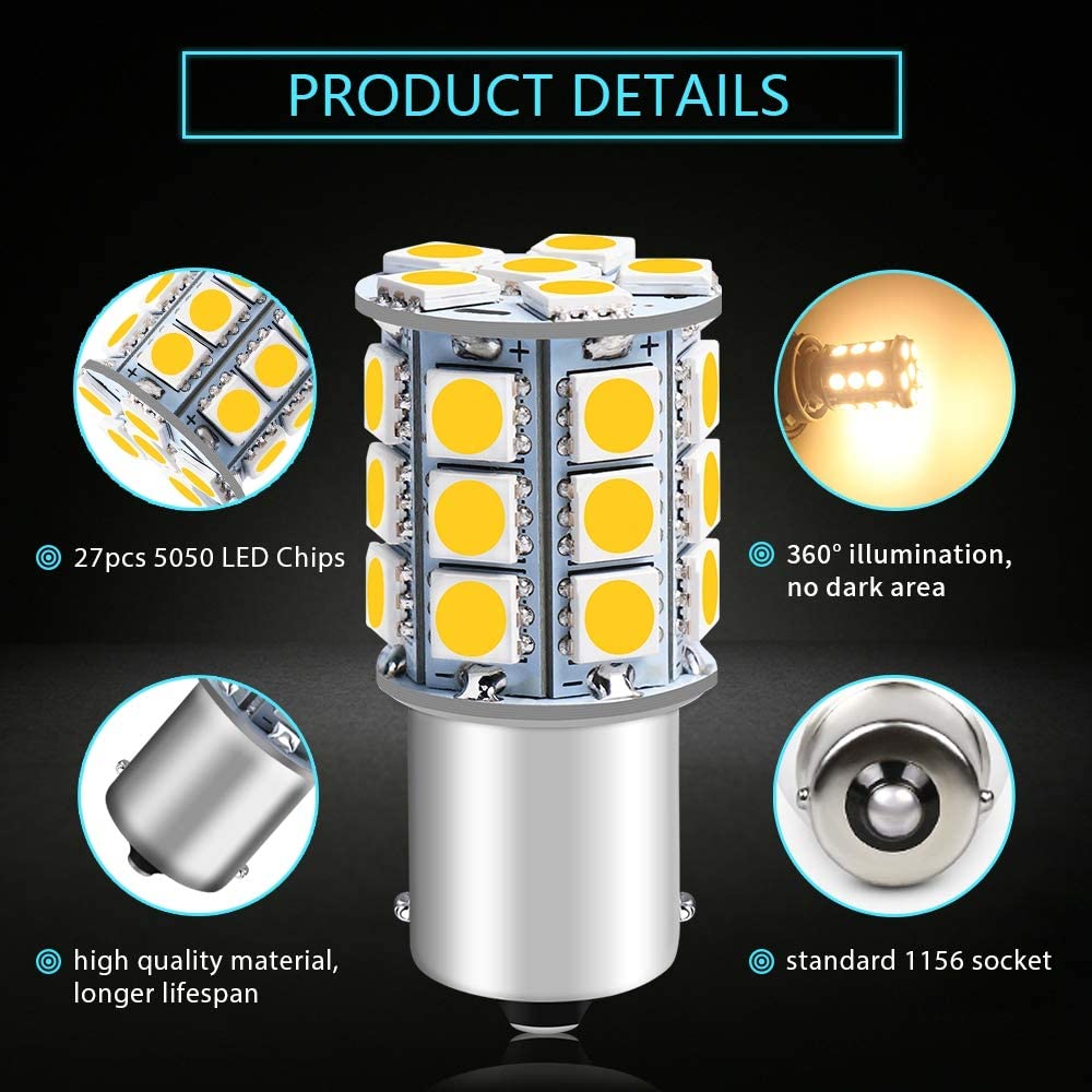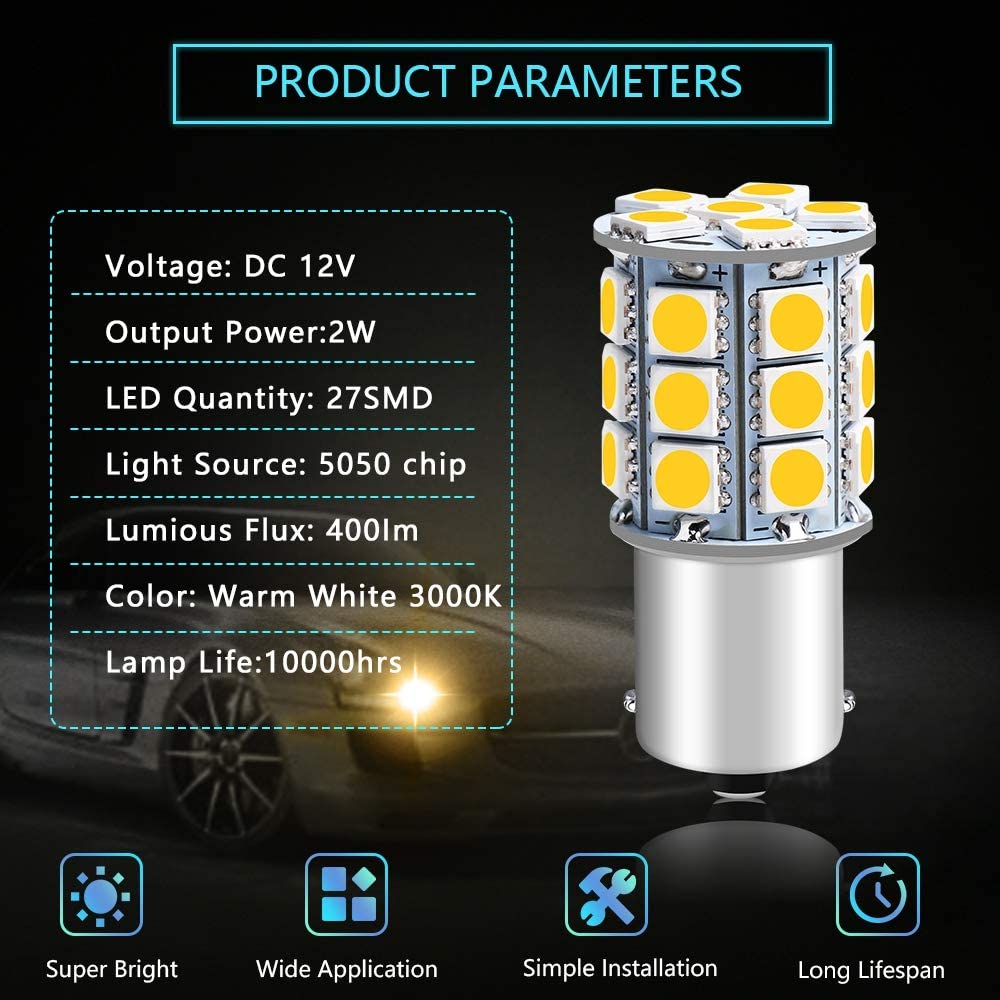 12パック3000Kウォームホワイト1156BA15S 7506 1141 1003 1073LEDライト12V-DC27SMDRVキャンピングカー用車の交換インテリア照明マリンキャビンボート照明トレーラーテールバックアップライト
