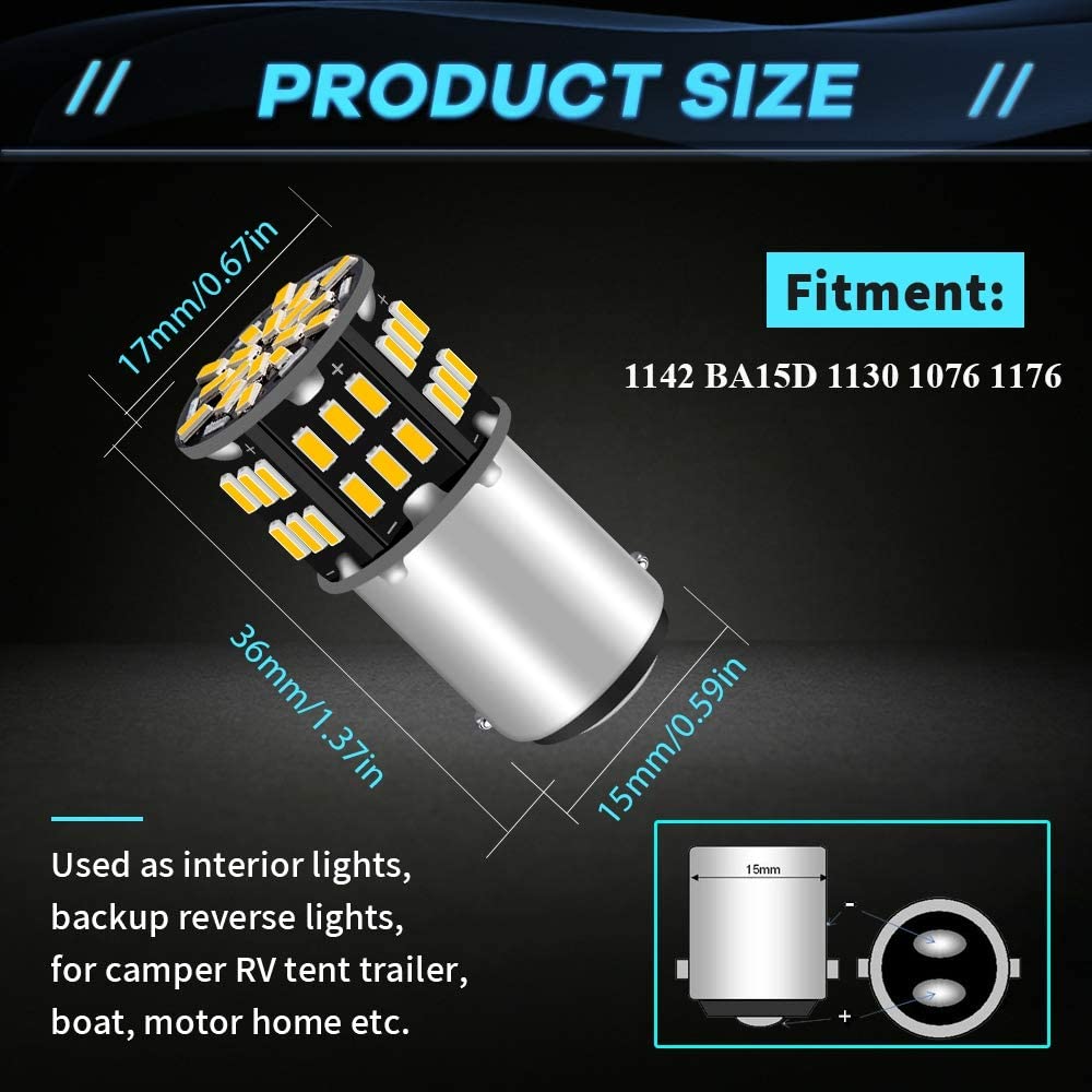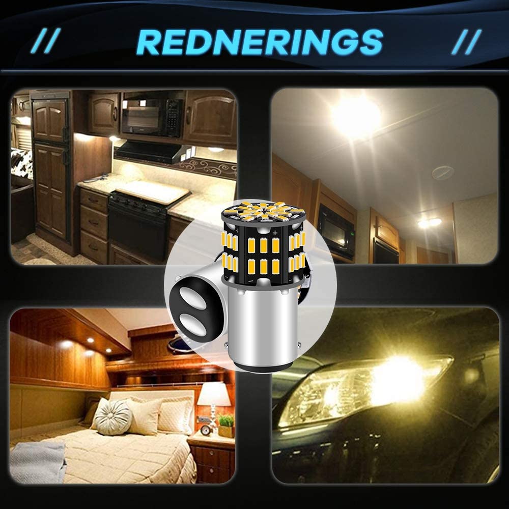 12パックBA15D1142ソフトウォームホワイト3000kLEDライト12V-DC、3014 54SMD車のインテリアRV照明用交換キャンピングカーターンシグナルライトランプテールバックアップバルブ