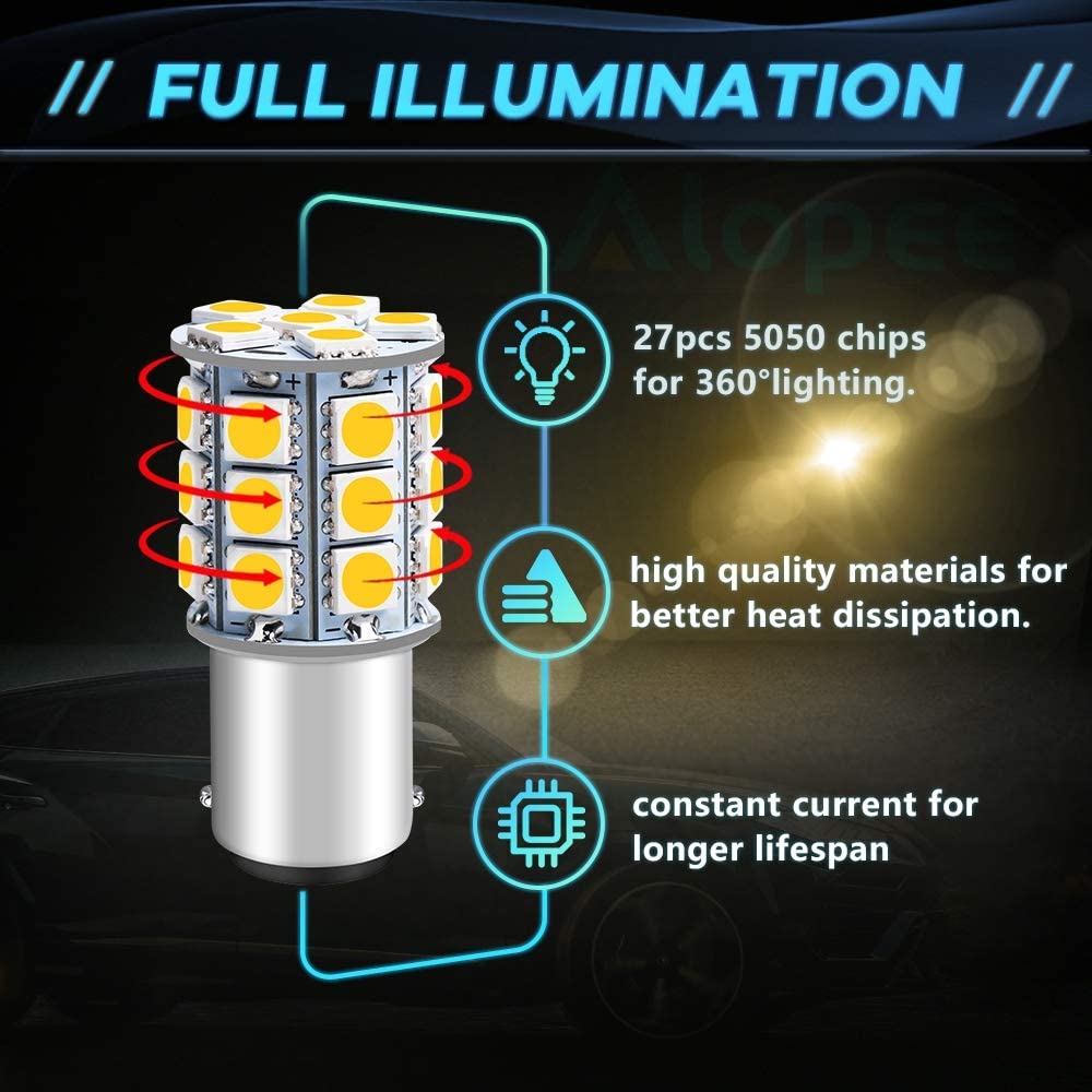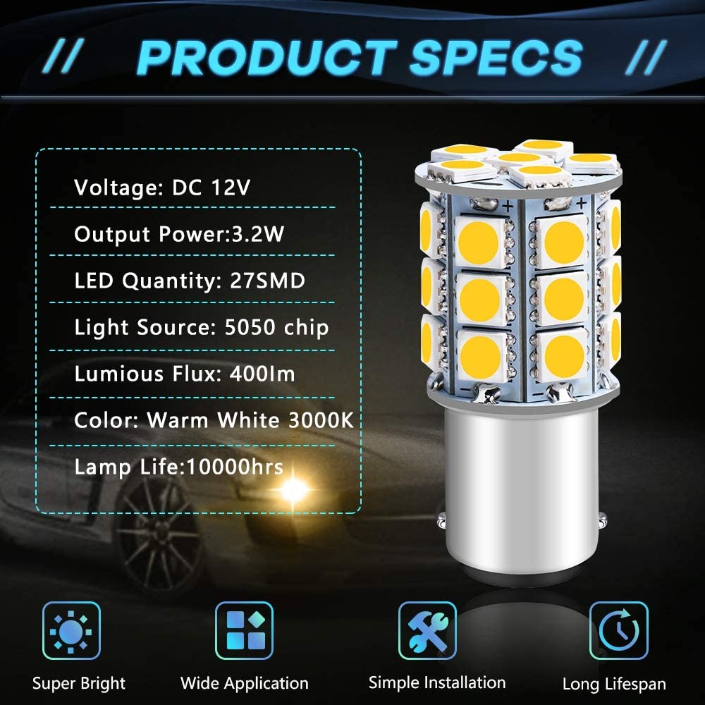12パックBA15D1142ソフトウォームホワイト3000kLEDライト12V-DC、5050 27SMD車のインテリアRV照明用交換キャンピングカーターンシグナルライトランプテールバックアップバルブ