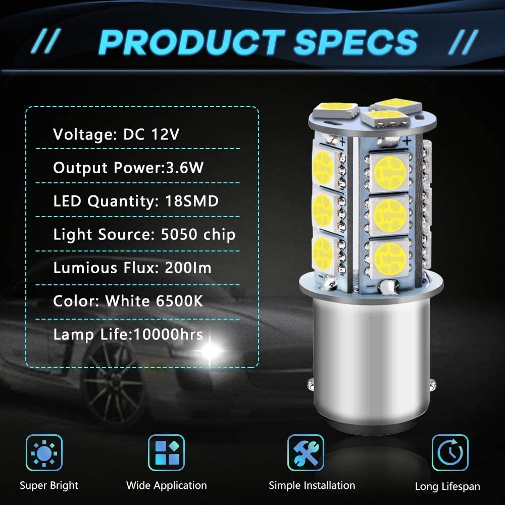 12パックBA15D1142ホワイト6000kLEDライト12V-DC18SMD電球車のRVキャンピングカー用交換インテリア照明ボートヤードテールバックアップライト