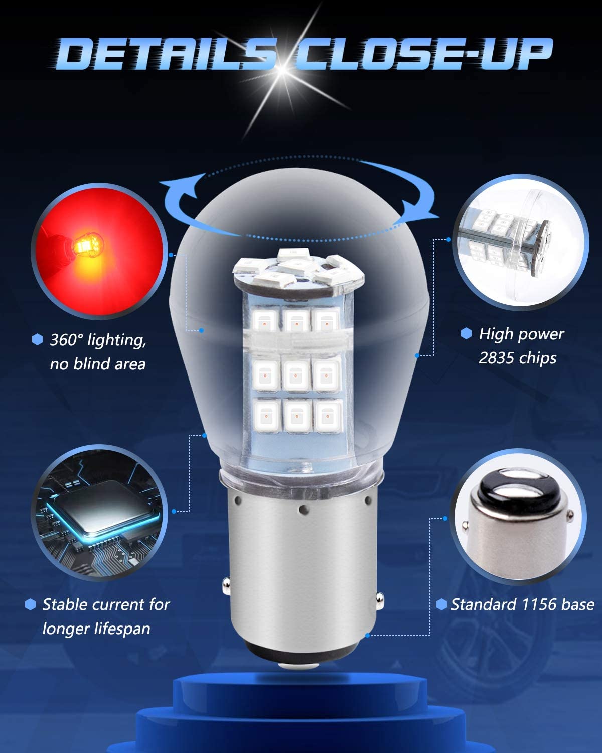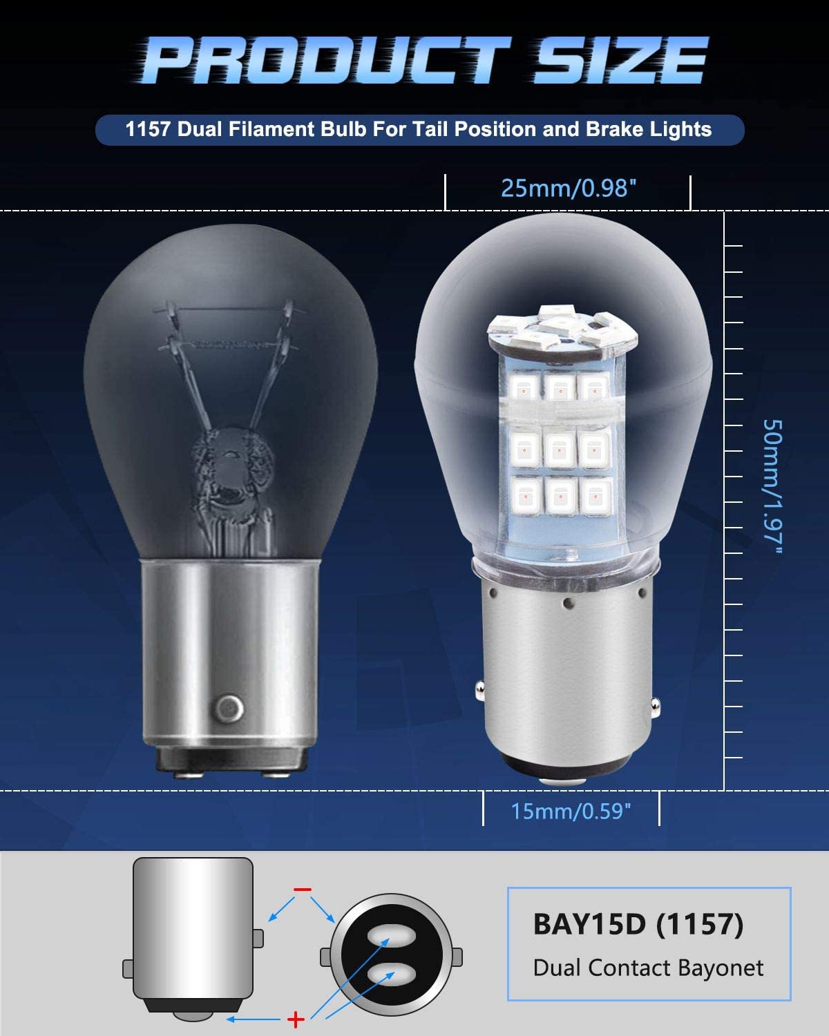 2パック10-24VDC非常に明るい赤11572057 2357 7528 BAY15D 33SMDLED電球ハロゲンランプの交換テールブレーキライトストップライト