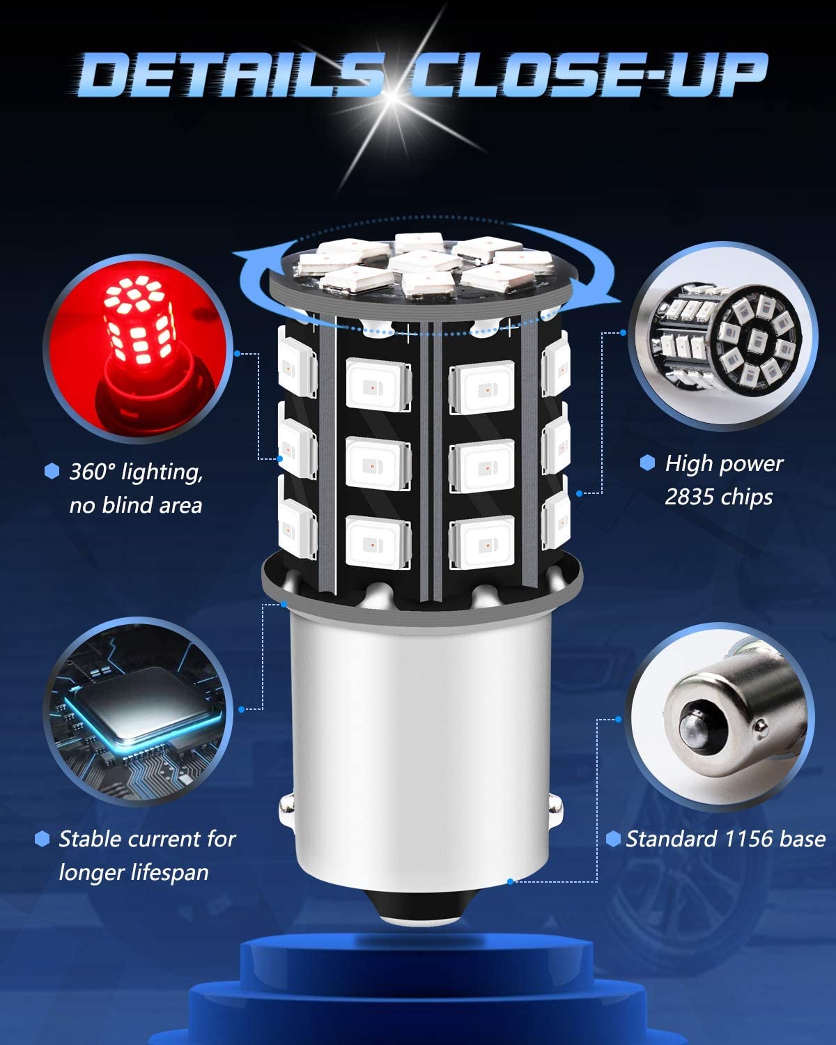 2パック1156BA15S 1141 1073 75061003カーブレーキ電球-12V-24V非常に明るい赤283533 SMDLED電球-テール電球の交換駐車電球