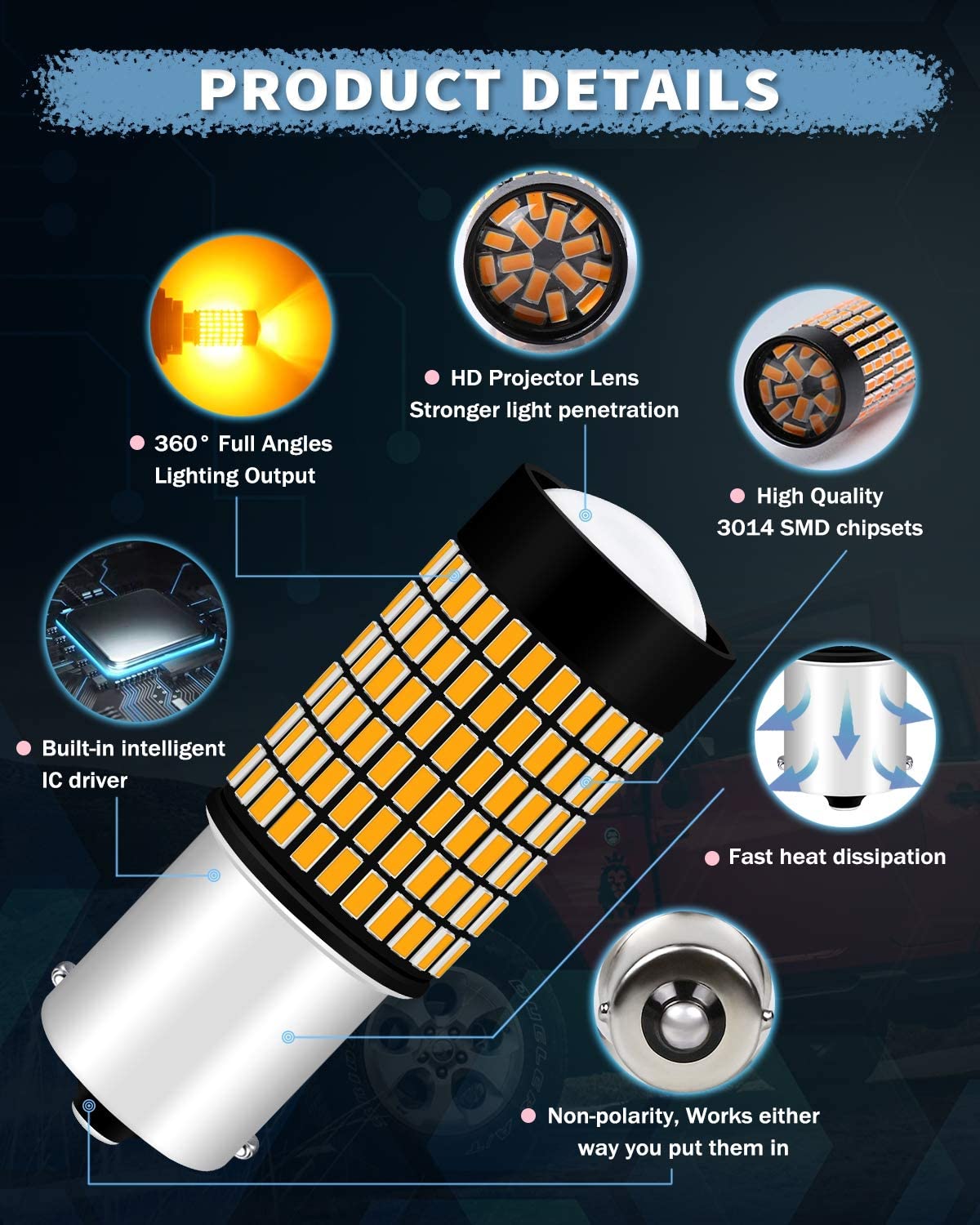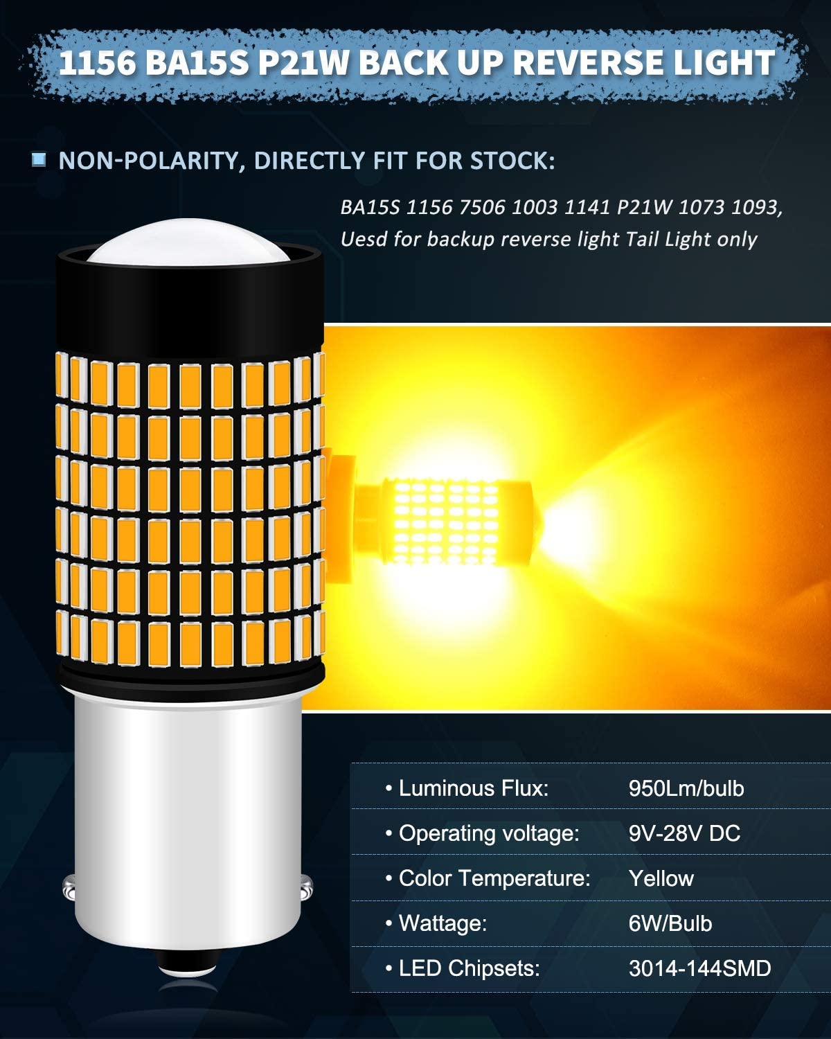ALOPEE-2パック1156BA15Sカーターンシグナルライト-9V-30V琥珀色/黄色非常に明るい950ルーメン3014144 SMD LED(プロジェクター付き)-テールブリンカーLEDバルブライトの交換用1141 1073 7506 1003