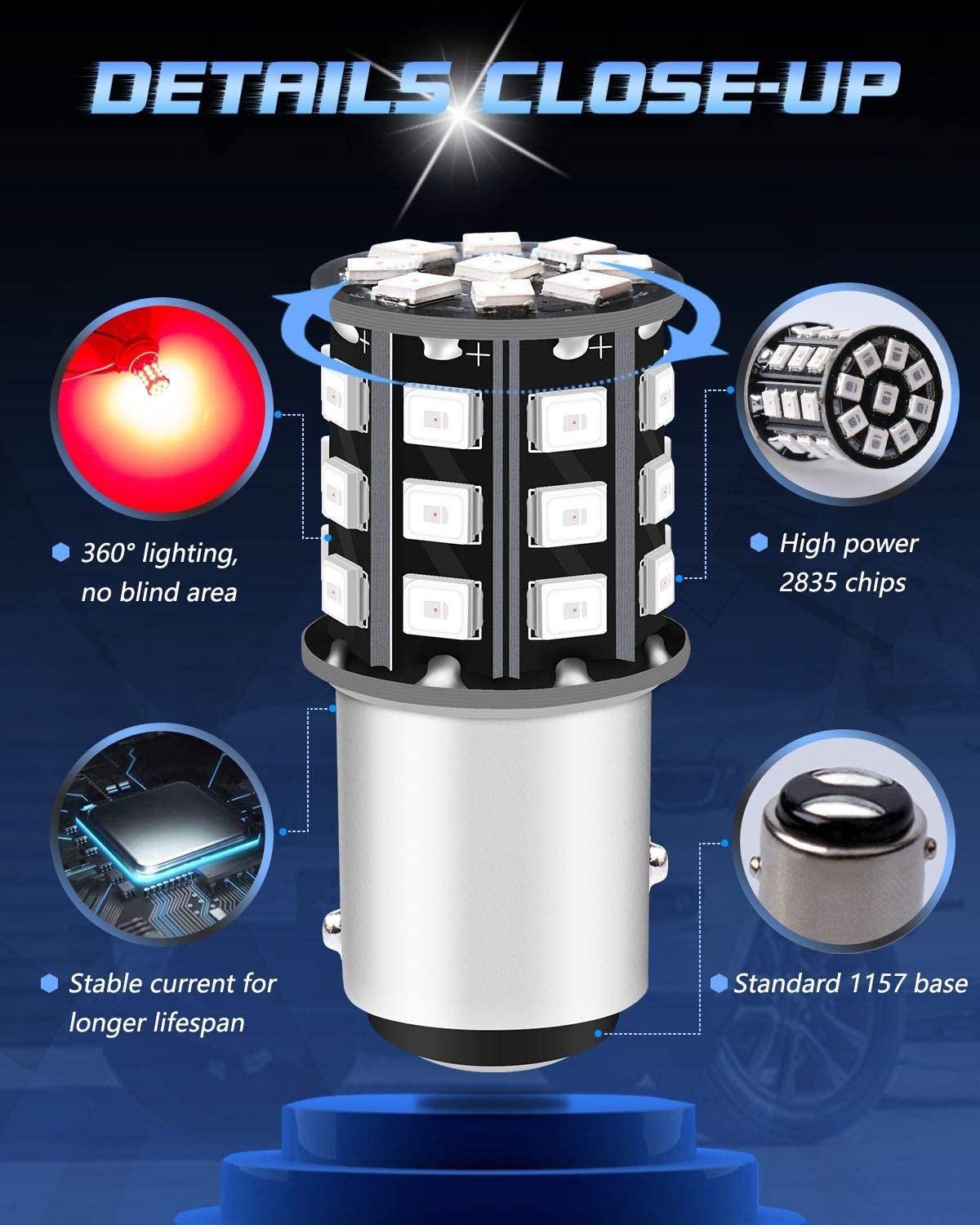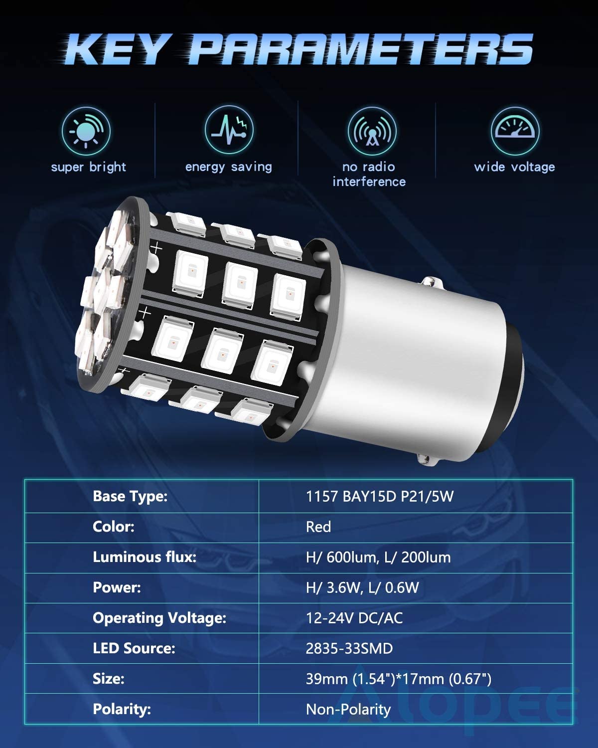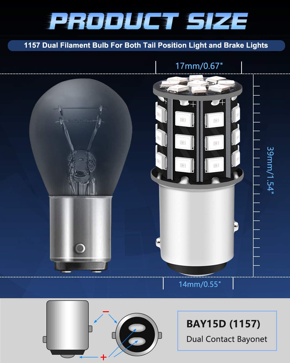 2パック1157BAY15D 1016 1034 7528 20572357カーブレーキライト-12V-24V非常に明るい赤283533 SMDLED電球-テールLED電球の交換