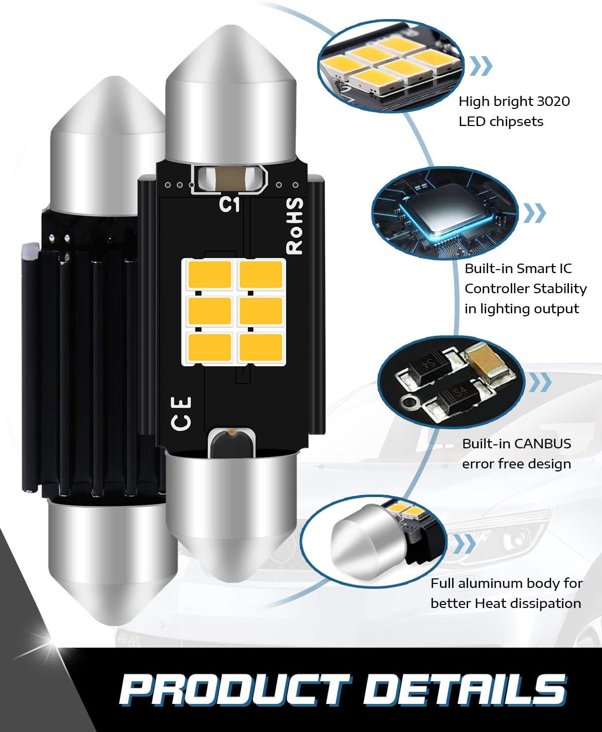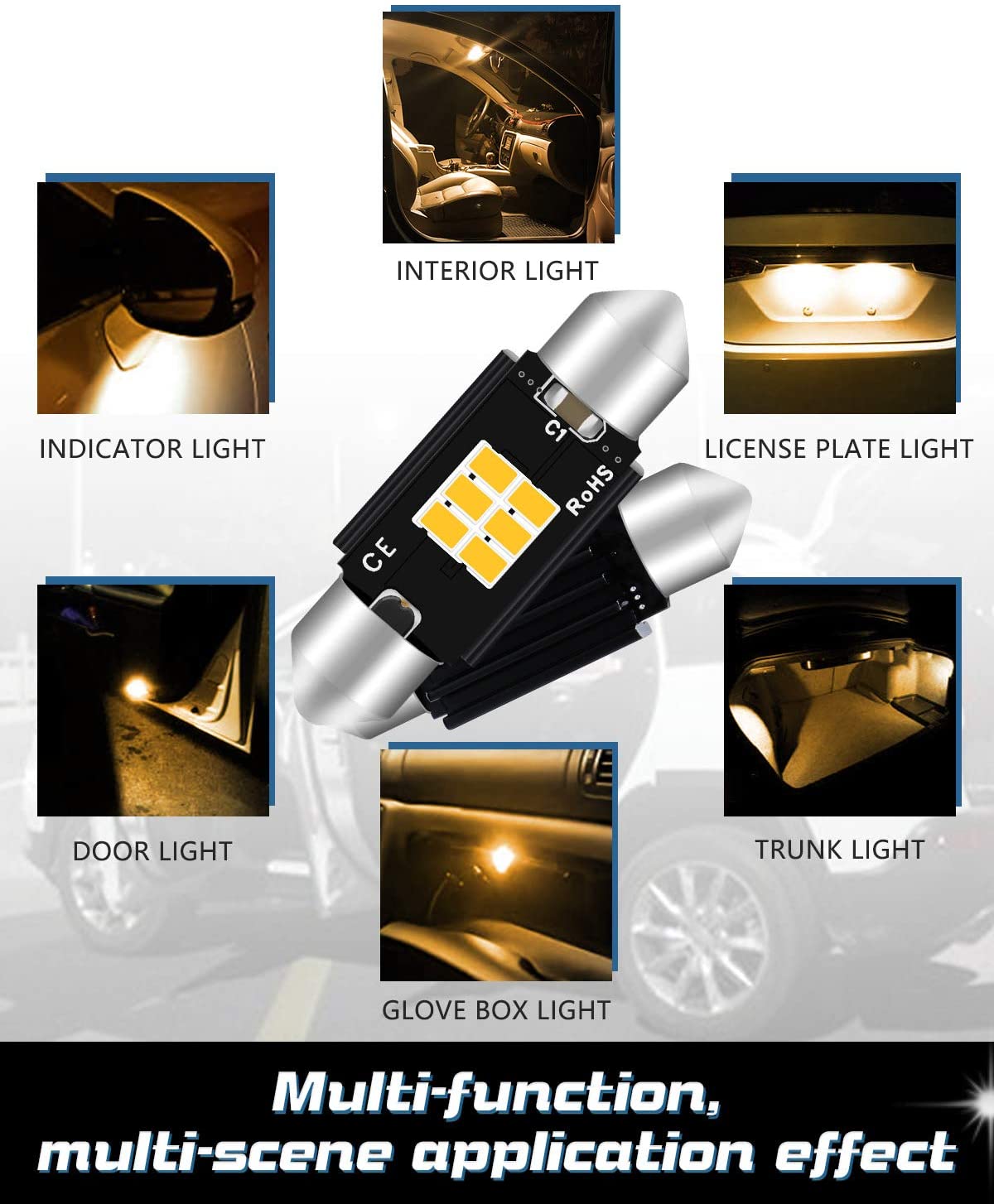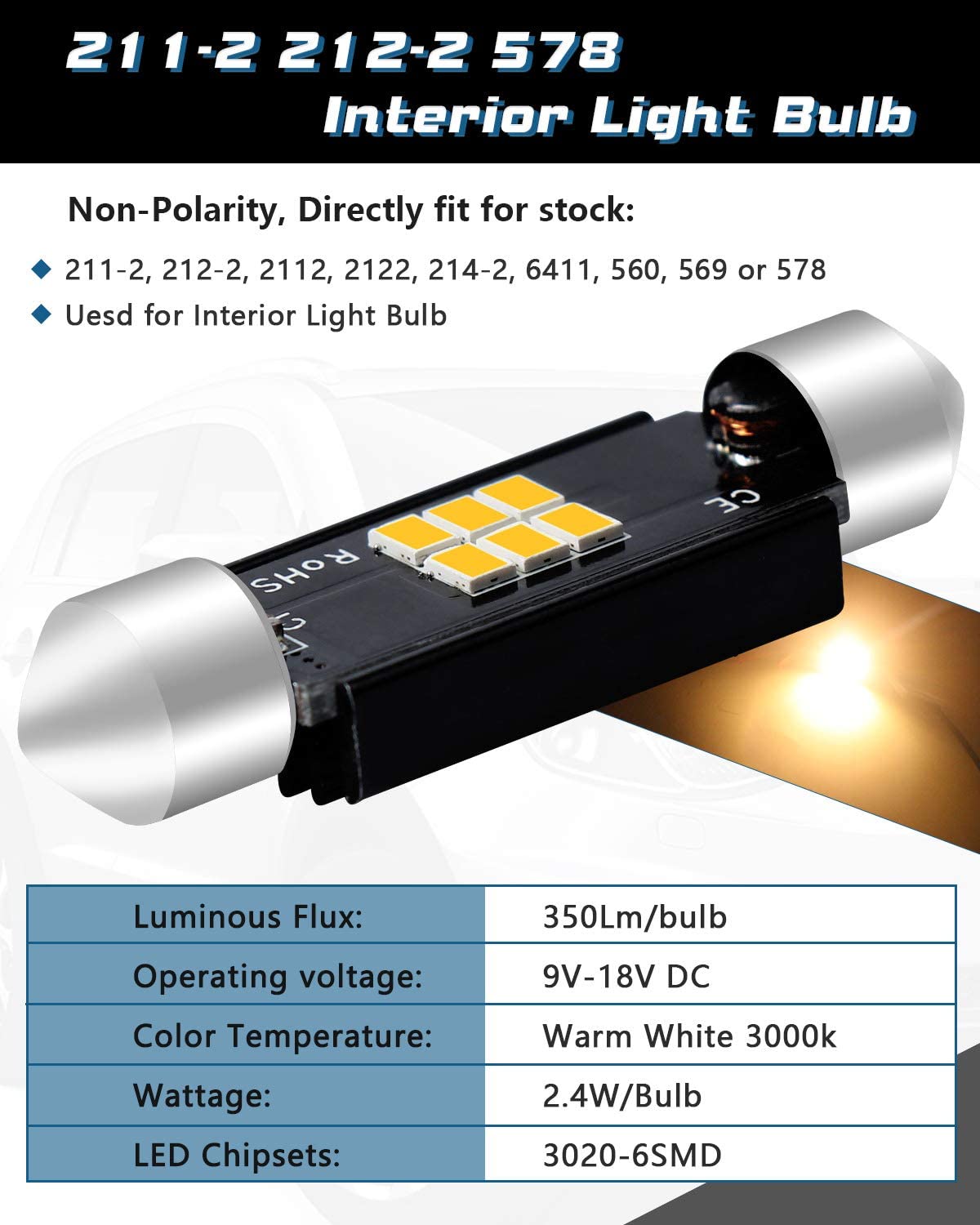 4パック1.72インチ41MM211-2 569578ウォームホワイト350ルーメン3020チップセット6SMD非極性Canbusエラーのないインテリアカーライト用LED花綱電球ライセンスプレートドームマップドア礼儀ライト