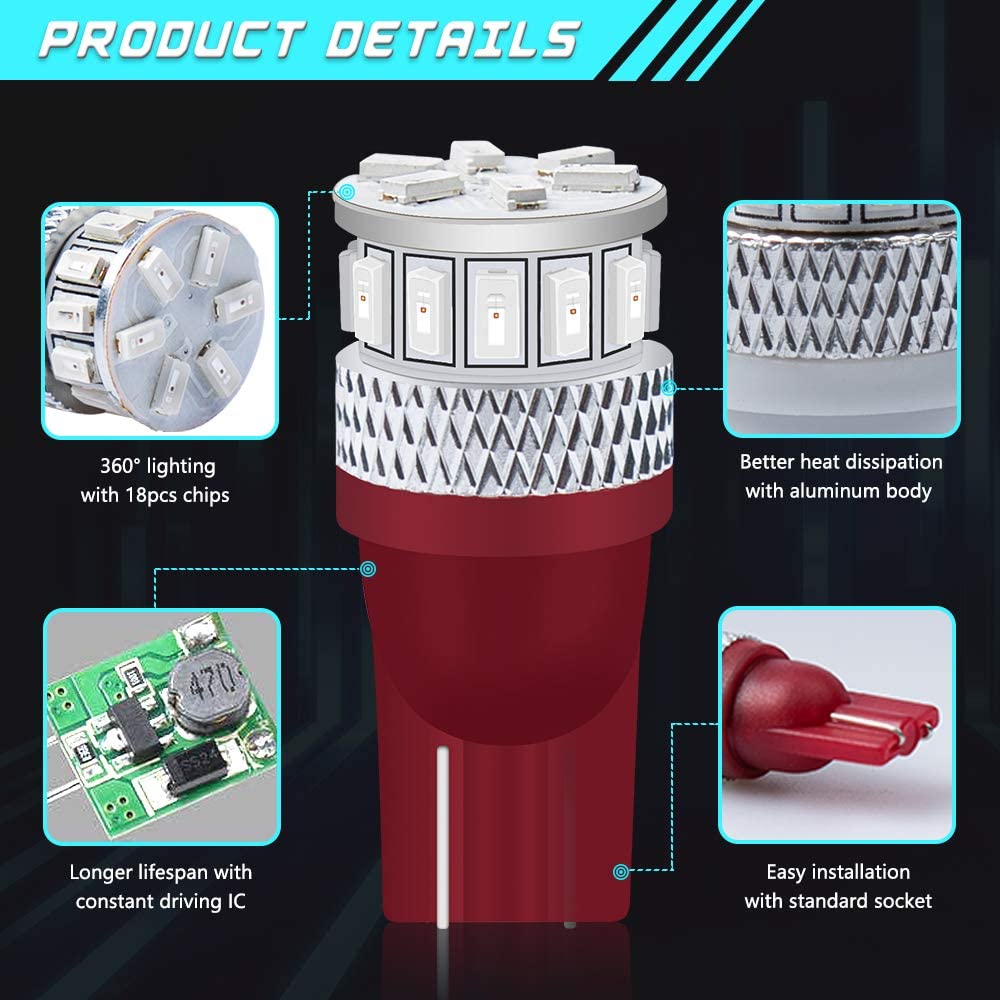 4パックT10194 1682825非常に明るい150Lums赤第5世代非極性LEDライト12V-24V-18SMD3014マップ用車の交換ドームナンバープレートダッシュボードサイドマーカーライト3番目のブレーキライト