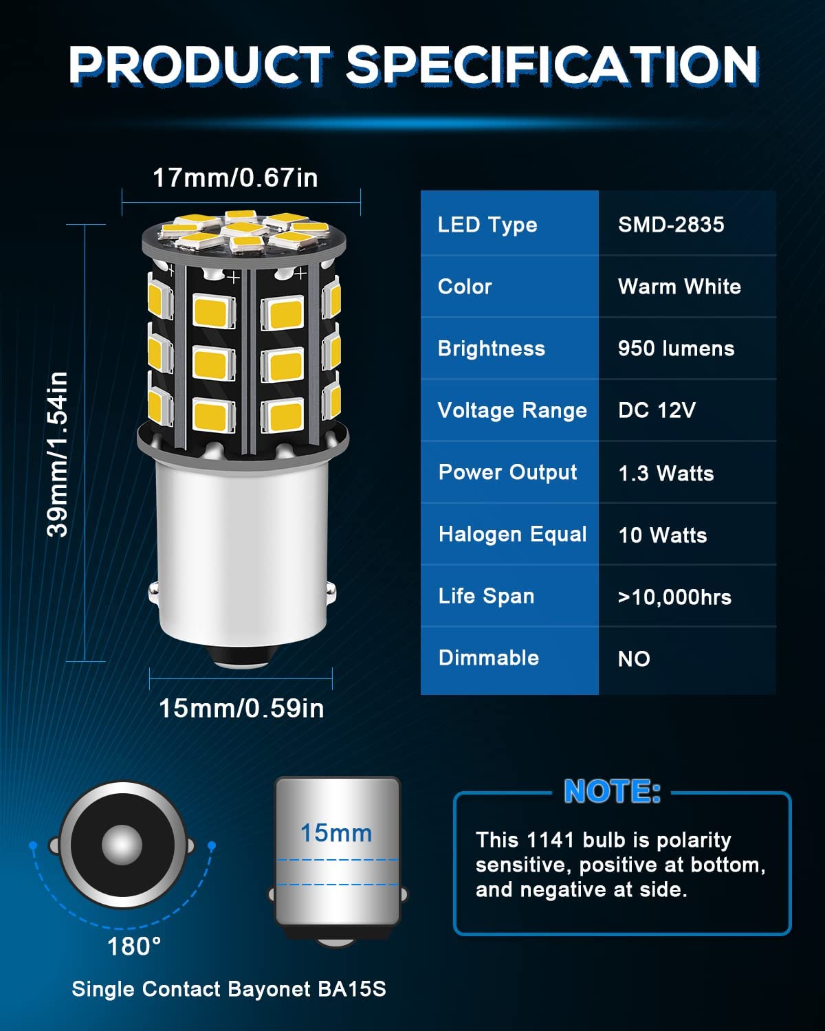 Alopee 1156 LED Bulb Soft Warm White 1141 LED Bulb DC 12V 1156 Bulb Replacement for 1156 7506 1141 1003 RV LED Lights Interior Camper Light Bulbs Trailer Boat RV Light Bulbs 2835 33SMD, Pack of 12